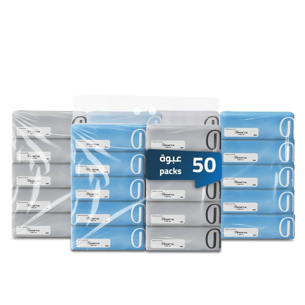 📋 المواصفات الفنية لعرض 50 علبة مناديل ورق نيورفا | كيس بكج التوفير العملاق (300 منديل - 3 طبقات):